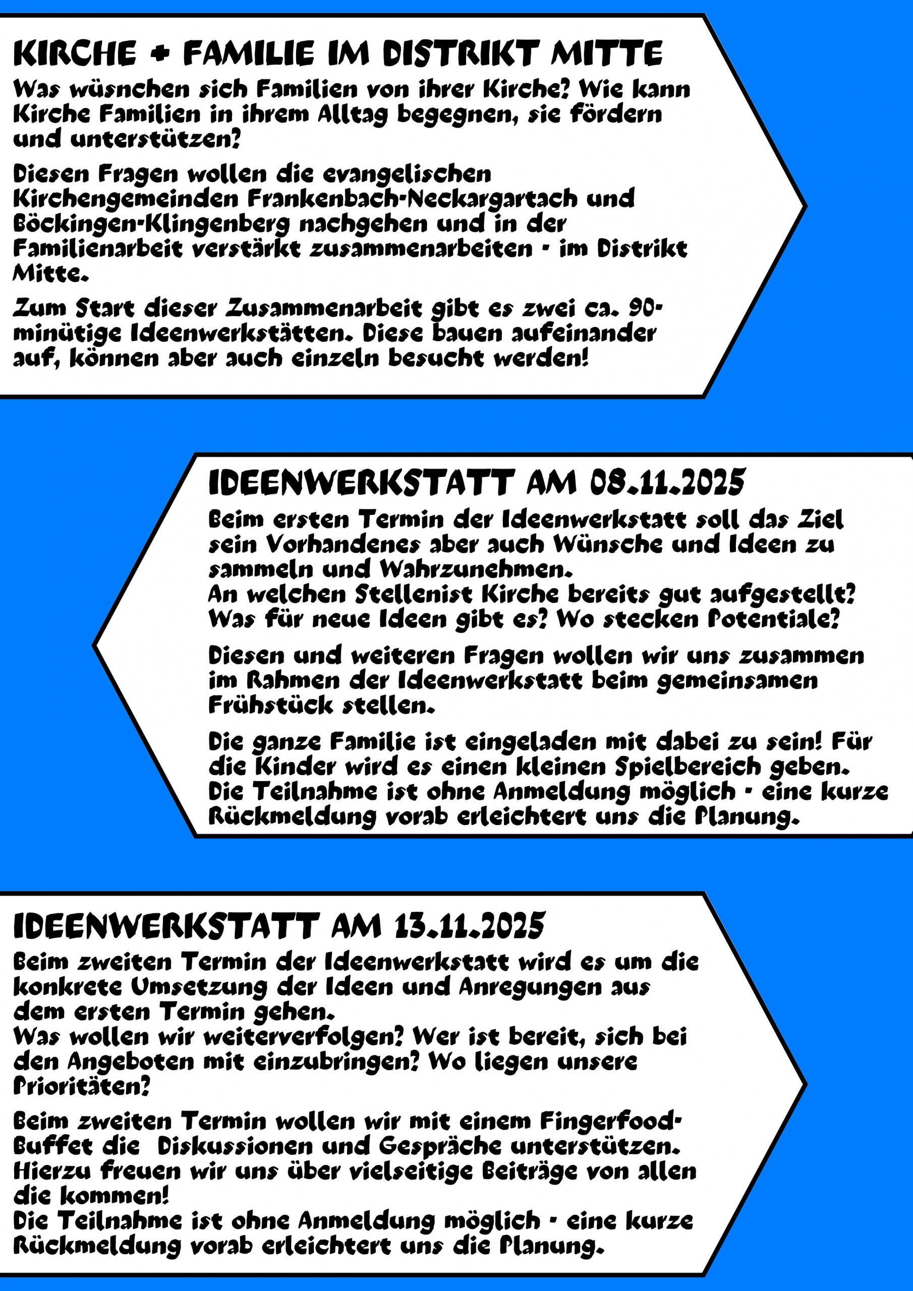 IdeenwerkstattWeiterlesen https://kirche-boeckingen-klingenberg.de/wp-content/uploads/2025/10/Flyer-Ideenwerkstatt-Kirche-Familie_01-scaled.jpg 2560 1810 Wuertz https://kirche-boeckingen-klingenberg.de/wp-content/uploads/2023/01/Logo_Kirchengemeinde_Boeckingen_Klingenberg-300x225.png Wuertz2025-05-11 12:00:002025-10-24 12:02:20Ideenwerkstatt