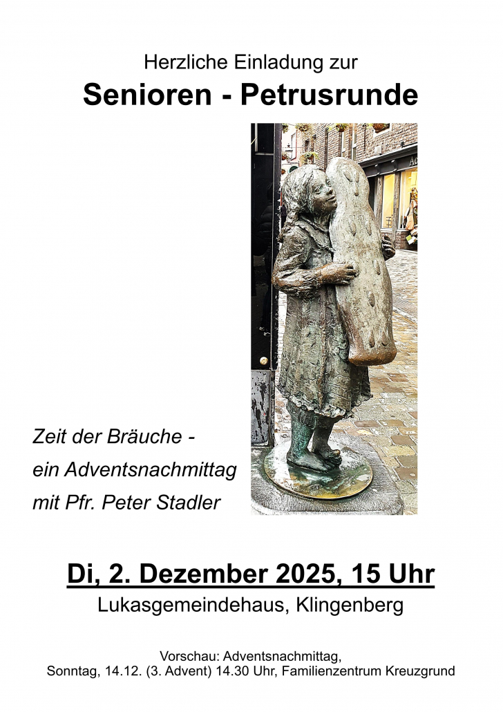Senioren Petrus-Runde https://kirche-boeckingen-klingenberg.de/wp-content/uploads/2025/11/Advent_01-scaled.jpg 2560 1810 Wuertz https://kirche-boeckingen-klingenberg.de/wp-content/uploads/2023/01/Logo_Kirchengemeinde_Boeckingen_Klingenberg-300x225.png Wuertz2025-05-11 10:02:002025-11-25 14:46:39Senioren Petrus-Runde